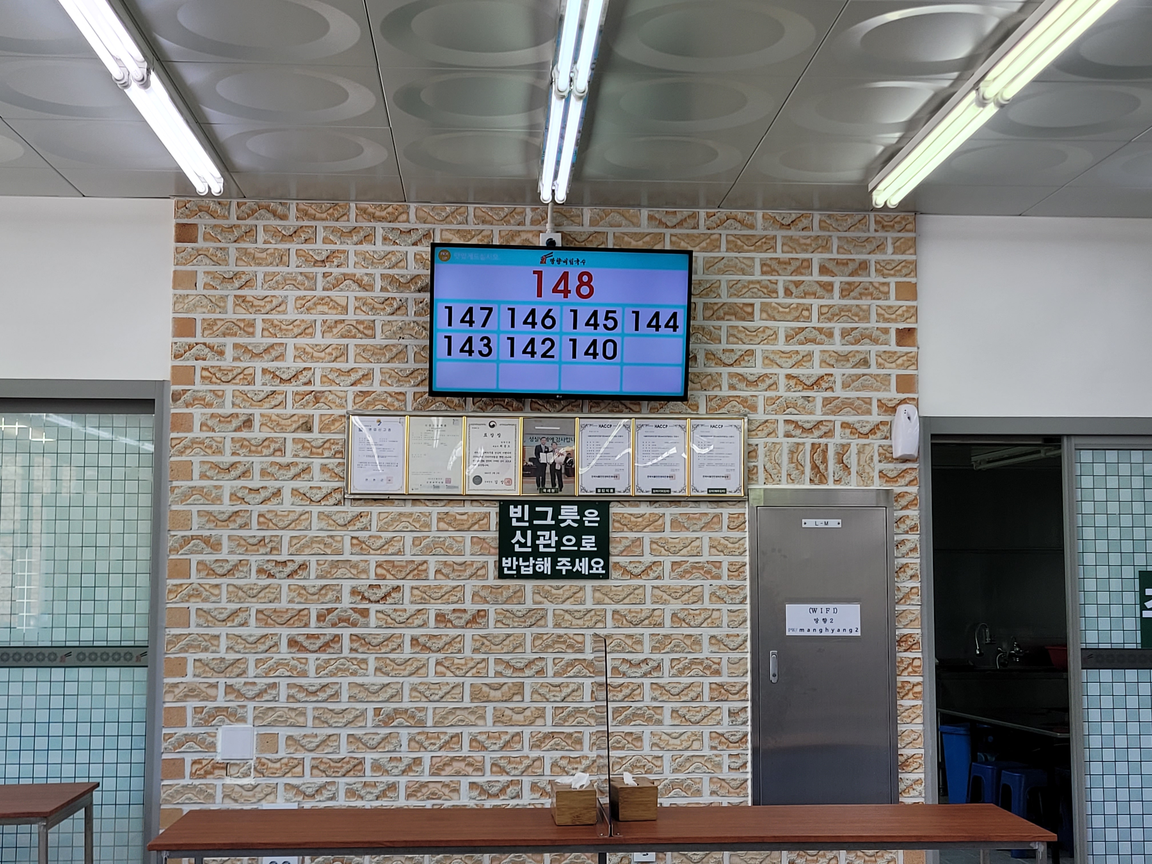 키오스크 주문 후 주문번호 종이를 받아 순서가 되면 전광판을 보고 메뉴는 가질러 간다!