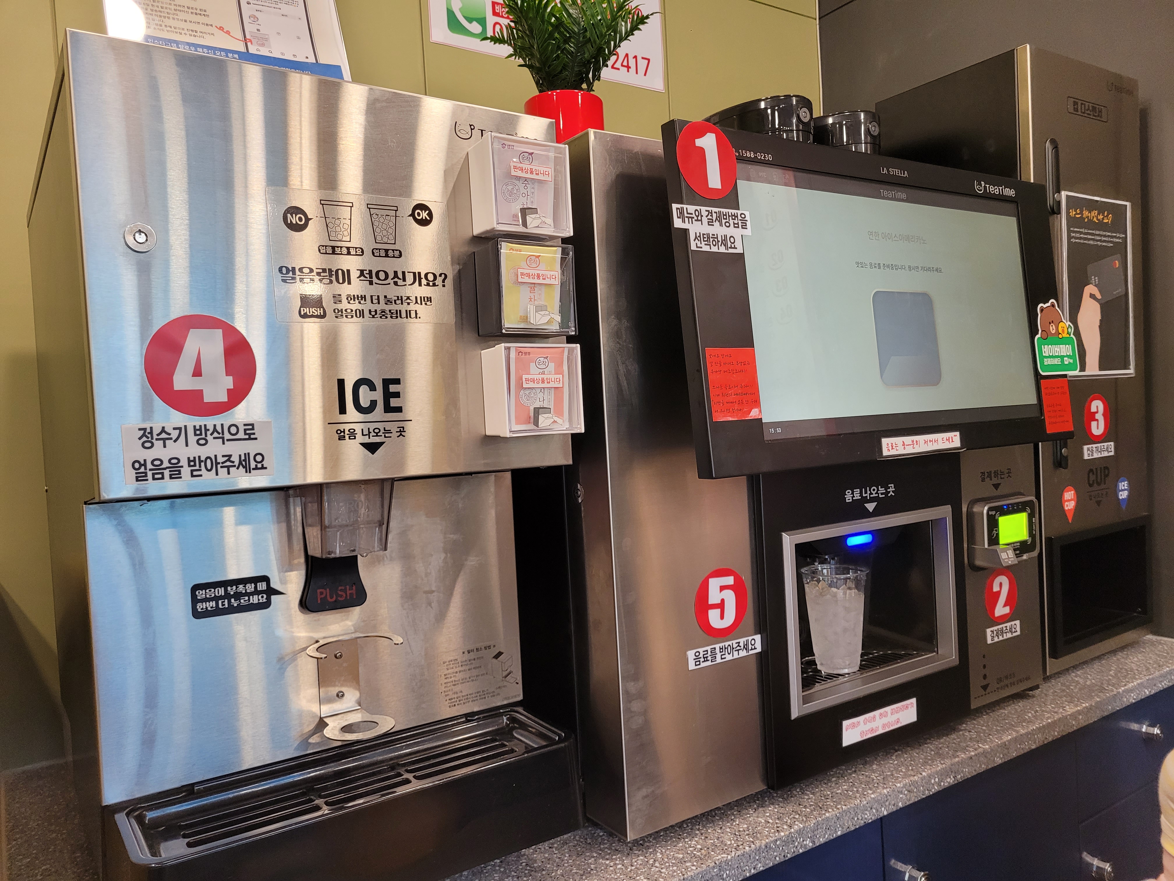 2번에서 결제하고 3번에서 음료컵을 받아
