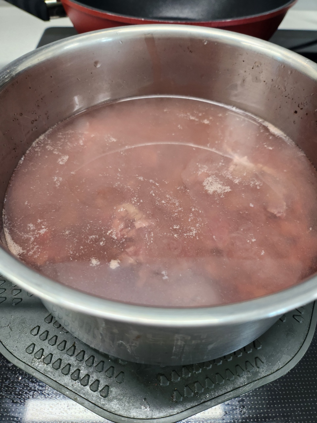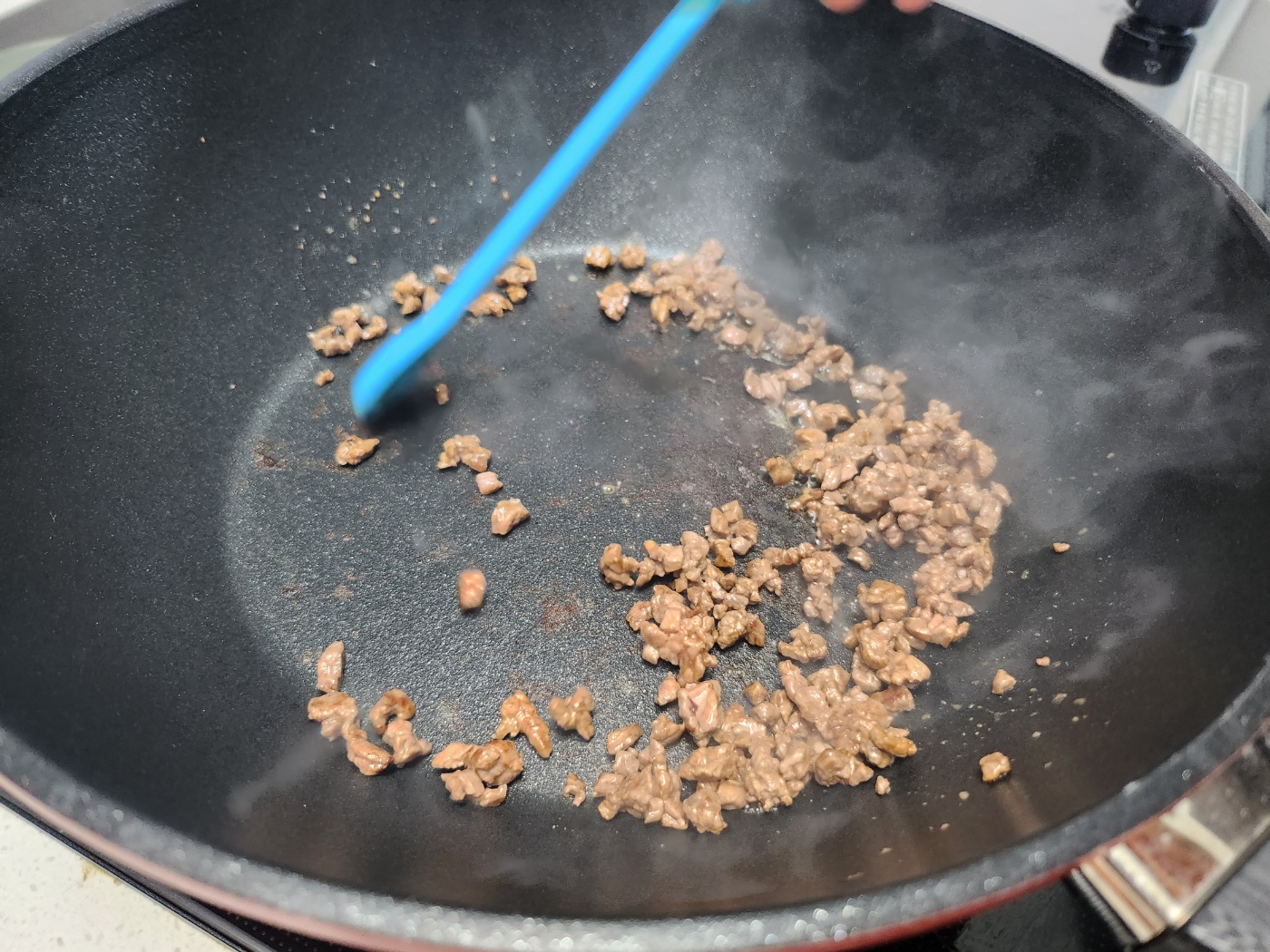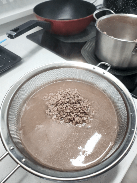 물을 끓이고 소고기 다짐육을 풍덩! 끓인다!