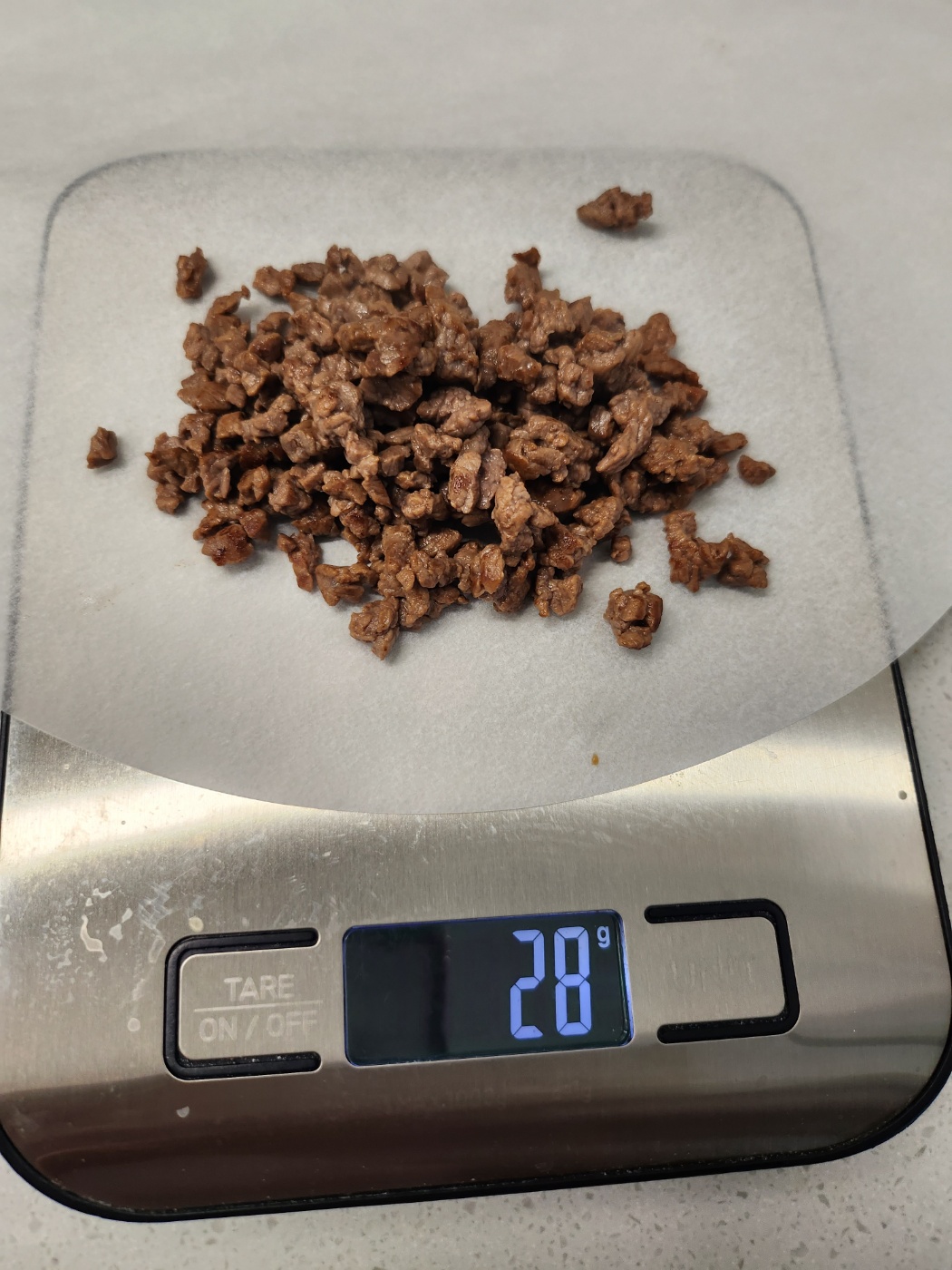 볶고 난 뒤에는 수분이 날라가 버려서 28g만 남았다