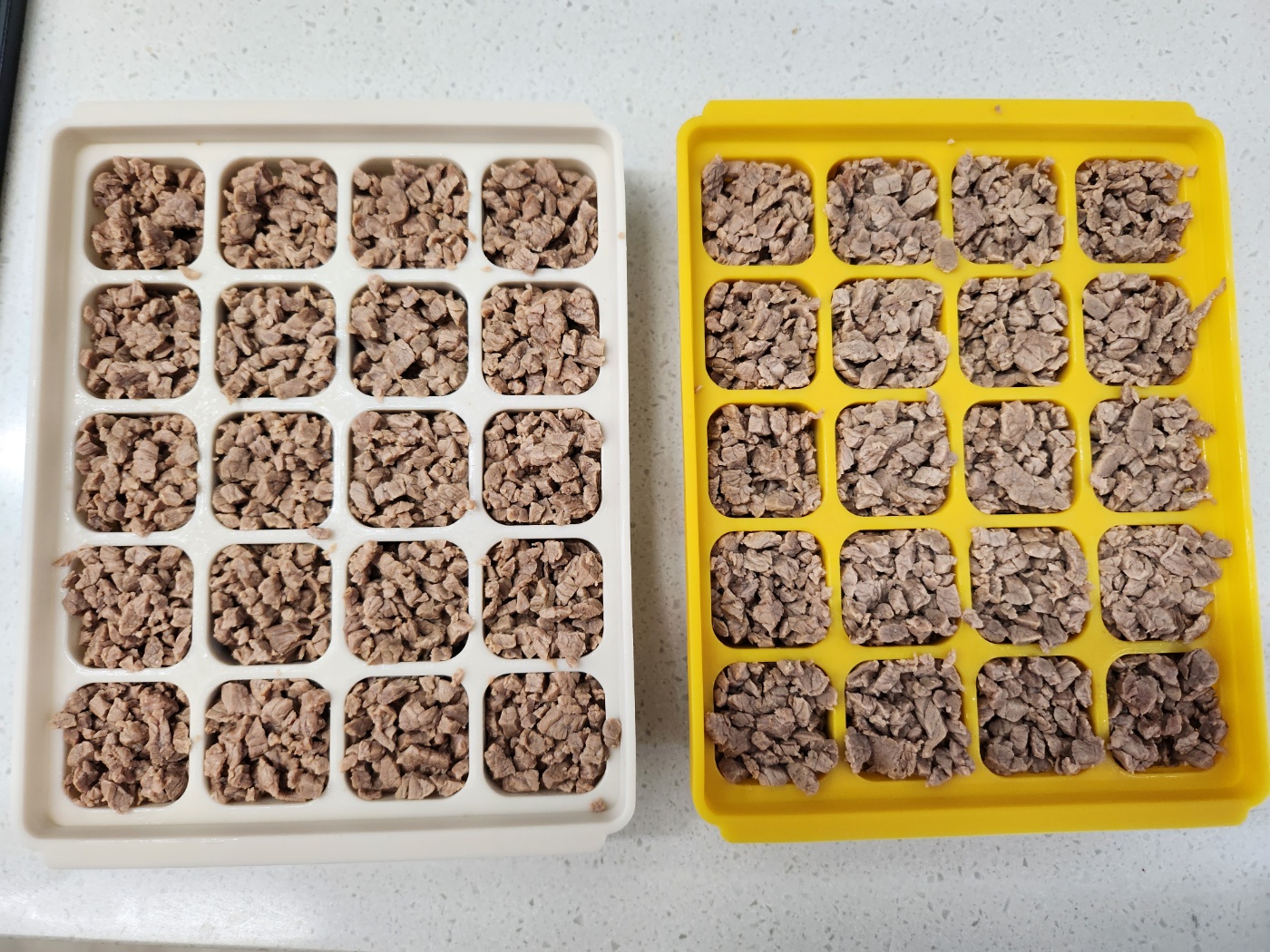 지인이 운영하고 있는 도시목장에서 정기적으로 소고기를 배송 받아 후기 이유식 큐브를 만들고 있다